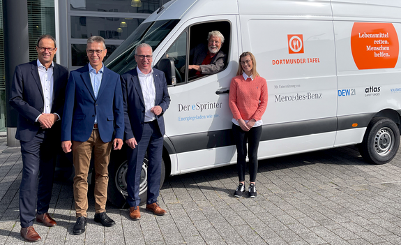 A ATLAS apoiou o Dortmunder Tafel com a compra de um novo veículo de transporte, mais precisamente um Mercedes E-Sprinter. Isso significa que ainda mais alimentos podem ser transportados com segurança e em perfeitas condições.