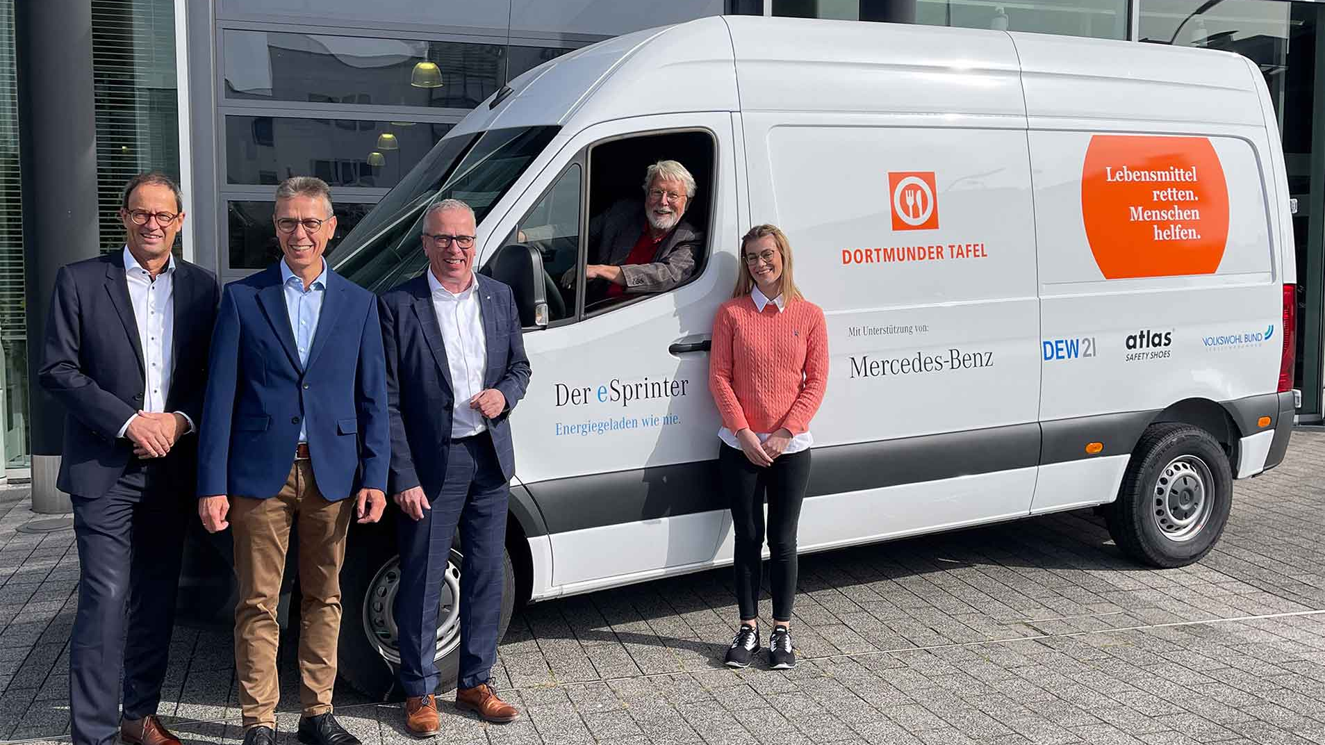 Aktuell holt die Dortmunder Tafel täglich mit mehr als 11 Fahrzeugen Lebensmittel bei bis zu 174 Lieferanten und Spendern ab. Logistisch ist dies eine große Herausforderung, die ständig wächst und eine sorgfältige Planung erfordert. ATLAS® hat die Dortmunder Tafel bei der Anschaffung eines neuen Transportfahrzeuges unterstützt, genauer gesagt, eines Mercedes E-Sprinters. Dadurch können noch mehr Lebensmittel sicher und in einem einwandfreien Zustand transportiert werden.
