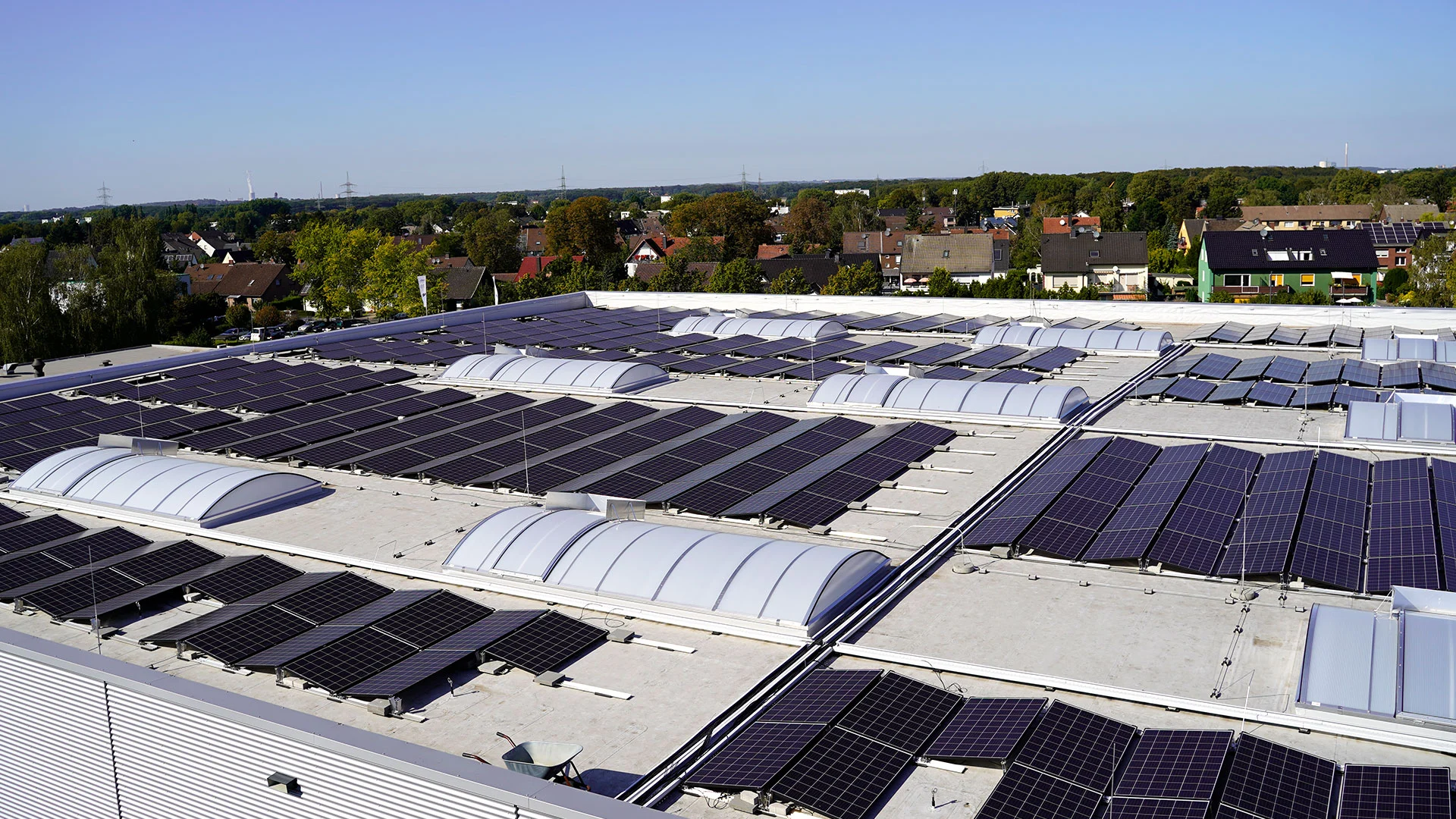 Hierfür wurden auf dem Produktionsdach insgesamt 300 m2 Solarpanele montiert, welche mit einem Trägermedium durchströmt werden. Dieses Trägermedium wird bereits durch geringe Sonneneinstrahlung auf bis zu 100 °C erhitzt und dann einem Wärmespeicher zugeführt. Dieser Wärmespeicher wiederrum ist mit unseren Produktionsmaschinen verbunden und heizt nun direkt den Wärmetauscher des Thermoöls an der Maschine. Die benötigten 60 °C Vorlauftemperatur können somit – auch aufgrund des Wärmespeichers – 24 Stunden lang an die Maschinen abgegeben werden. Somit kann an 70% der jährlichen Arbeitstage die elektrische Energie zu 100% gespart und durch Sonnenenergie ersetzt werden.