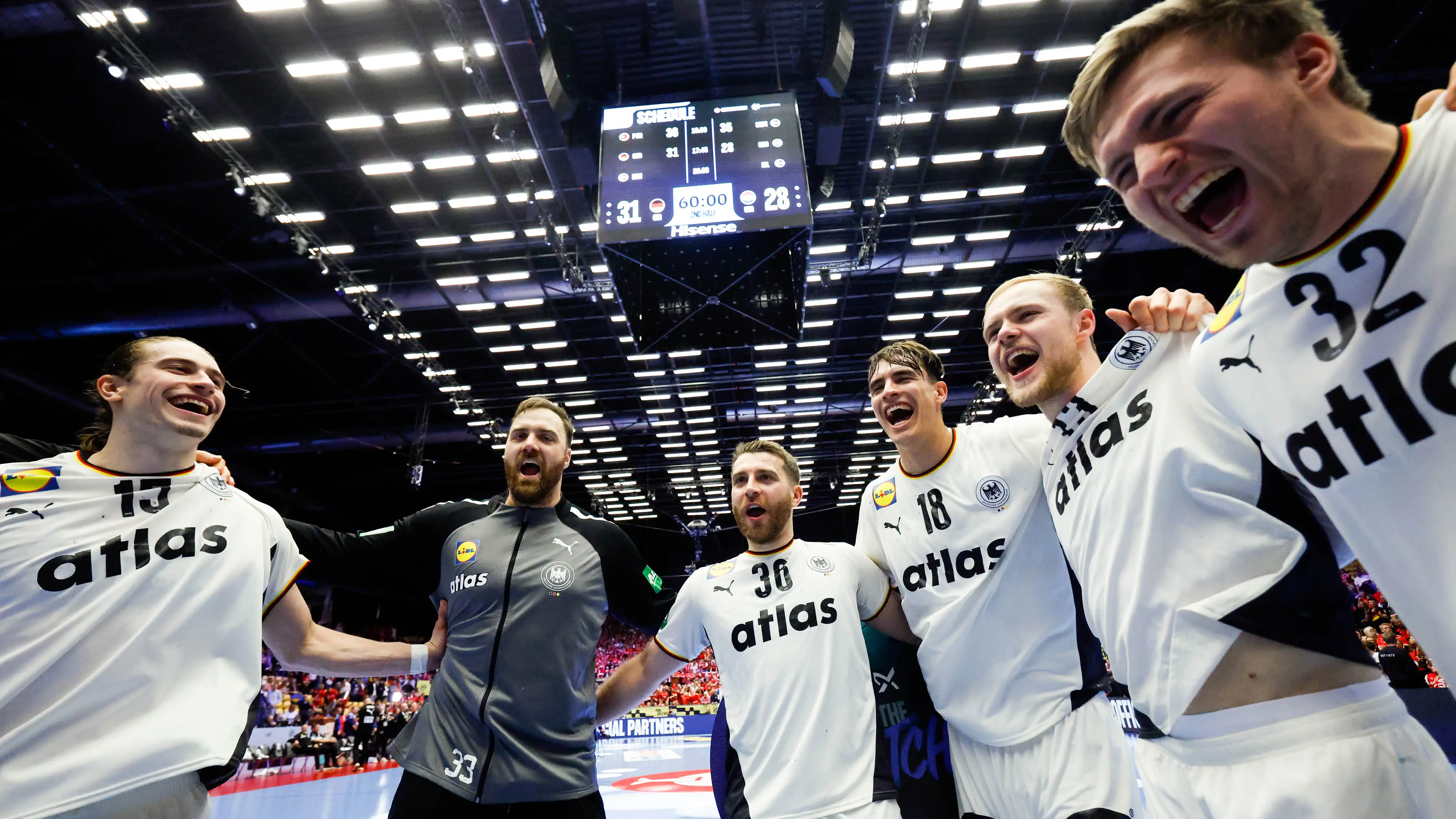 Além do excelente desempenho esportivo, a ATLAS e a equipe da DHB também alcançaram recordes fora do campo: a semifinal contra a Croácia foi assistida por 7,96 milhões de pessoas, com uma impressionante participação de mercado de 40,3%. A final contra a Dinamarca também entusiasmou a Alemanha: os índices de audiência televisiva atingiram um novo pico com 12,82 milhões de telespectadores e uma participação de mercado de 50,8%, sublinhando o enorme carisma do handebol alemão. Graças à enorme cobertura mediática, conseguimos, como parceiros principais, com o nosso logotipo em destaque nas camisolas, alcançar uma visibilidade e presença de marca únicas.
